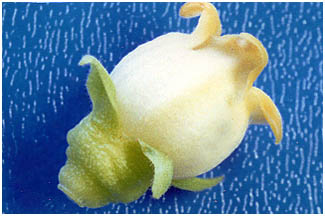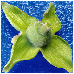 1本のめしべと8本の熟していないおしべをつけます。がく片は広い卵形で、ふちは反り曲がります。 |