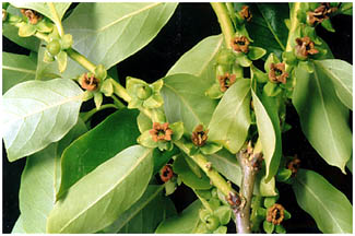 - 以前、カキの渋(しぶ)をとるため栽培され、六甲山地にポツリポツリと残っています。
