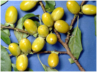 果実はとがっただ円体です。中国より1940年に入ってきました。