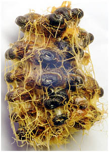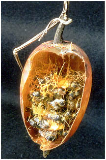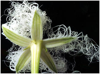 [カラスウリの花を裏から見たところ、2001.8.3.]