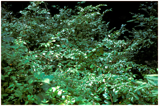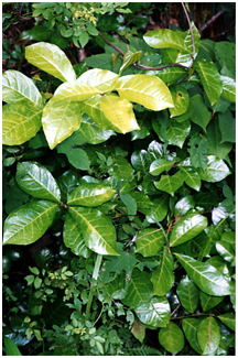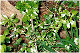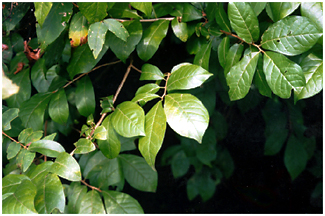 落葉低木で葉には光沢があります。2枚2枚の葉序で臭気があり、