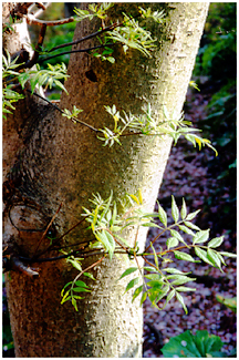 樹皮は淡い黄褐色で白い皮目がまばらにつきます。。