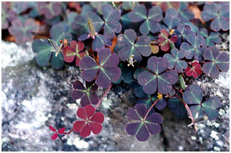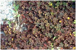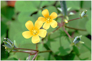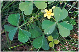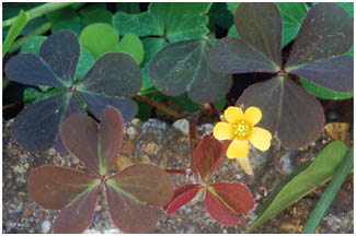 (1) 葉は互生または株からでます。葉が閉じたとき片側が欠けたように見えることからカタバミ(「片喰」)の名がつきました。