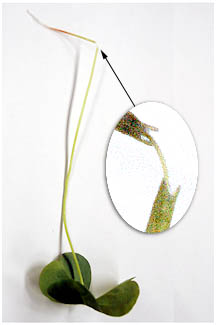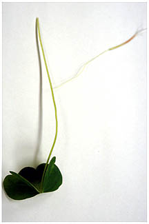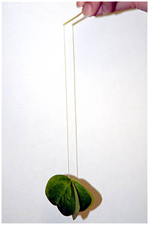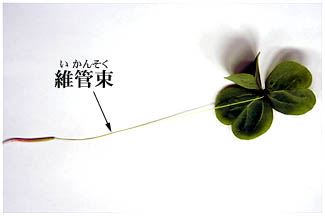 | 葉柄の根元を切って少し引き、維管束が見えるようにします。 |