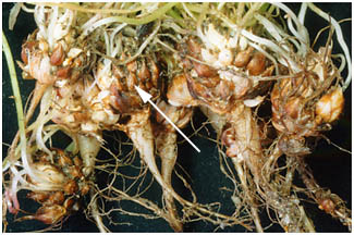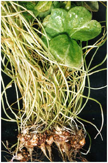 [根をかこむようにしてついているむかご] |