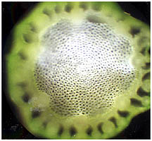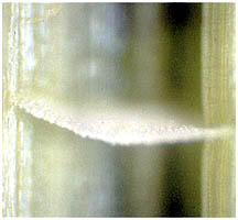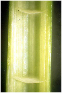 - 一定の間隔で白く薄い膜(隔膜)があります。