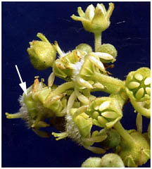 [矢印は花盤、2000.7.9.]