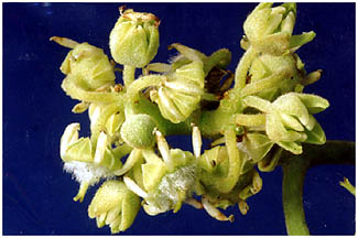 花盤にも白い毛を密生します。