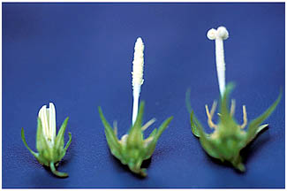 花はしぼむと黒くなります。次々に新しい花が咲いていきます。