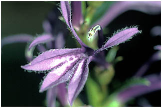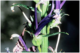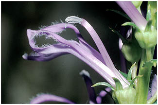 - 合弁花の花は5つに裂け、うち2枚は上に開きます。3唇弁は下を向きます。
