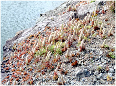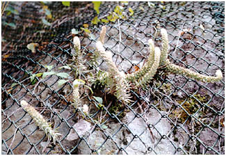高さ15cm、下の葉は細長く鋭くとがります。緑色です。