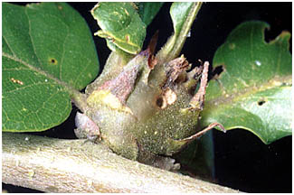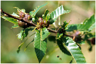| [昨年クリタマバチの寄生した枝、神戸市西区、2001.7.20.] |