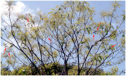 クスサン(蛾の一種です)の幼虫など、葉を裸にする昆虫がつきます。