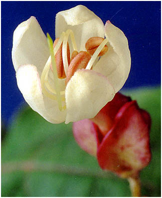 古い花・・・おしべは巻き、柱頭がつき出してきます。同じ花で熟す時を変えています。