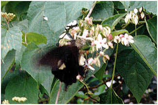 左の写真をクリックすると、モンキアゲハがみつをすうビデオを見ることができます。 |
