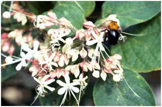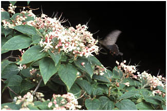 花にとまり、長い口吻を花の中に入れます。受粉にかかわります。