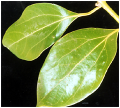 葉は深い緑で光沢があります。