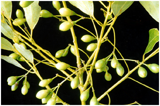 から長い柄を出し先にかたまった淡黄色の小花をつけます。