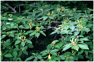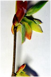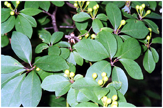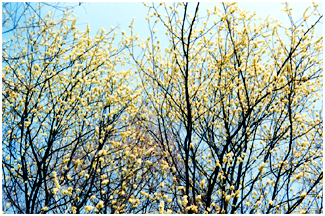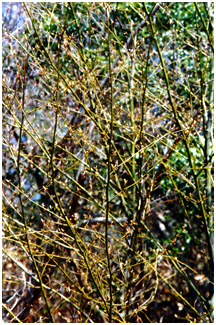 - 樹皮はつやがあり、黒い斑点のつく緑色です。