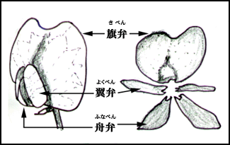- おしべの10本は基部で1つに合わさります(他のマメ科は10本のうち、9本がくっつき、1本が離れます)。