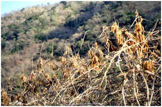 - 果実をつけたまま地上部の大部分が枯れてきます(写真下2枚)。