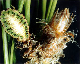 - めばなの花軸に大胞子葉がいっぱいついたものです。