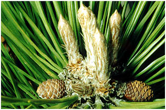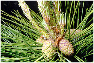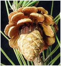 - 10月ころ熟すと果鱗(かりん)が木質化して黒褐色になり、やがて開いてきます。