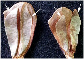 - すきまから翼のついた種がこぼれ出やすくなります。