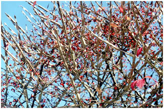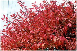 赤く鮮やかです。葉は小さく、長さ2−7cm。