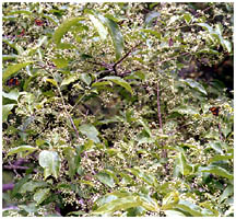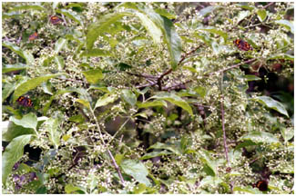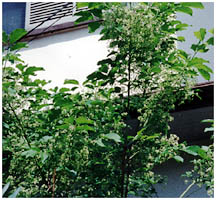- 花梗の先に小さく淡い緑色の花を多く咲かせます。