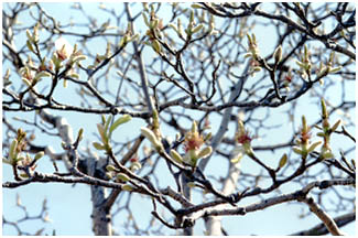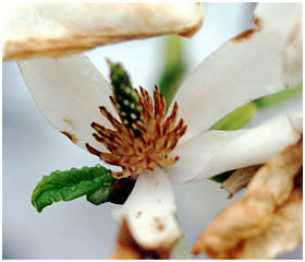 (2) 花の軸は長く、多くのおしべ、めしべがついています。