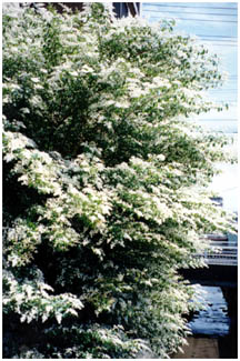 - 5月、花穂は枝先につきます。総状花序です。7−9mmの白の小花を密につけます。