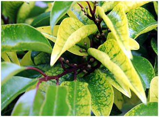 - 長さ12−18cmと大きく長だ円形の葉をつけます。