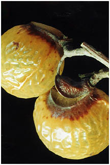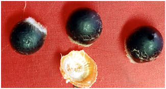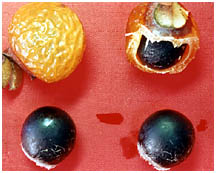 果皮はせっけんの代用として使われました。種子は黒く堅いです。