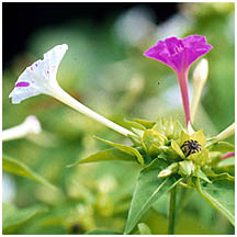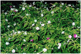 一株の花の中に、赤、白、黄色などいろいろな色の花をつけます。