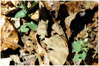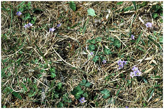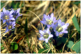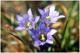 花は、春、茎の先端に青紫色の花を数個つけます。