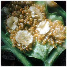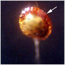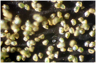 [小胞子体(白矢印)と前葉体(黄色矢印)]