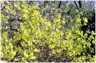- 若葉とほぼ同時に淡い黄緑色の花をつけます。