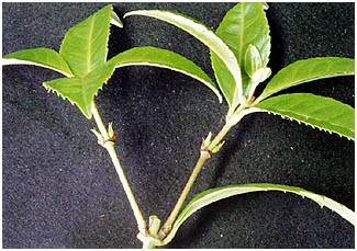 (2) 葉は対生につきます。