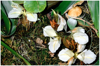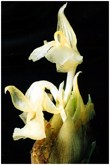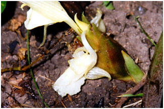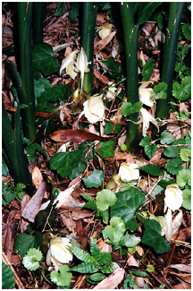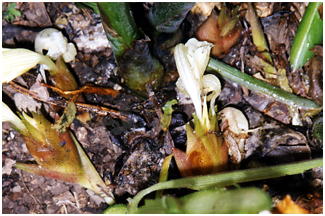 花は7月地上部の先にでき、地上部すれすれに咲きます。