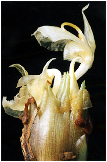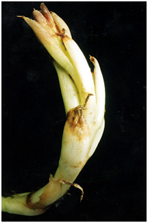 葉の鞘が重なって茎のようにみえるので偽茎といいます。