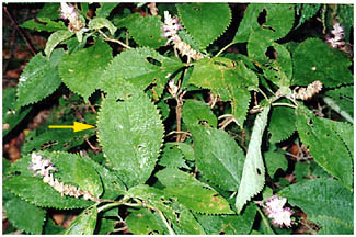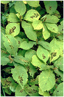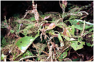 [虫に食われた葉、氷上郡青垣町、2001.11.7.] |