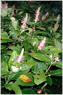 六甲山地を歩いていると谷筋などでわりあいよく出会います。群生しています。花は特別鮮やかではありませんが歩き過ぎて花を振り返るような趣のある花です。名前は花が美しいので人が振り返って見る「見返り草」からついたようです。