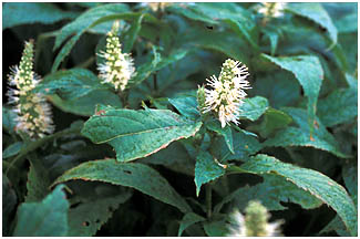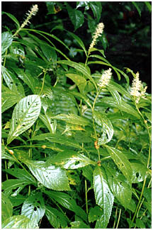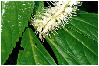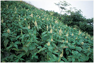 ※ミカエリソウと同じように葉をコガネムシ類が食い荒らします。ぼろぼろになった葉が天人の羽衣(破衣)にたとえられてテンニンソウ(天人草)と名がついたといわれています。