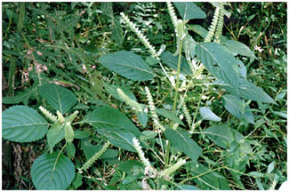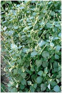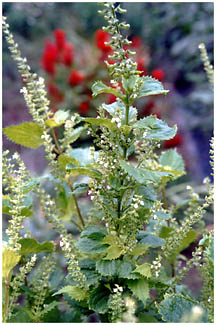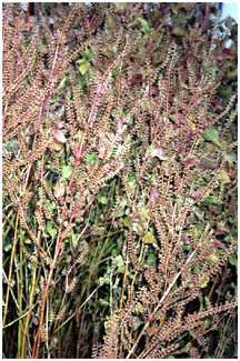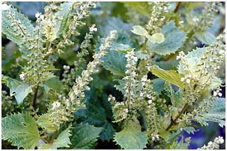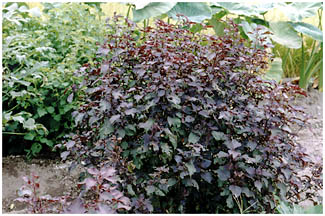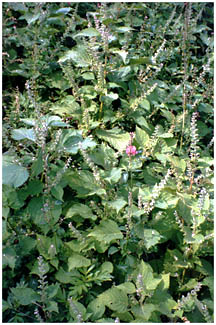 [左奥がアオジソ、手前が赤ジゾ、栽培、多可郡中町、2002.9.6.]