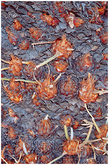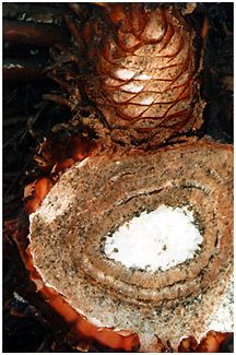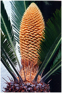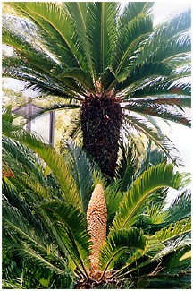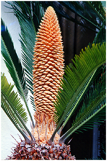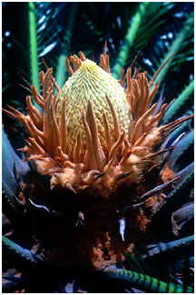根は根粒があり、中に藍藻(アナベナ)が入り、空中から窒素を取りソテツに与えています。