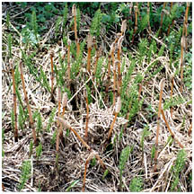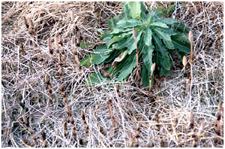 [胞子茎に緑の葉がつく、1983.4.4.] |