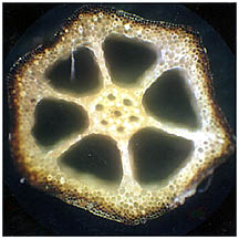 ※節の近くで切ると、空気孔はほとんど見られません(写真上右2枚)。