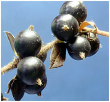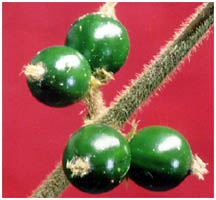 - 水っぽく直径6−7mmの球形で2個ならんでつきます。