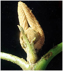 - 若い葉はかっ色の毛をつけていますが、やがて緑色に変わります。